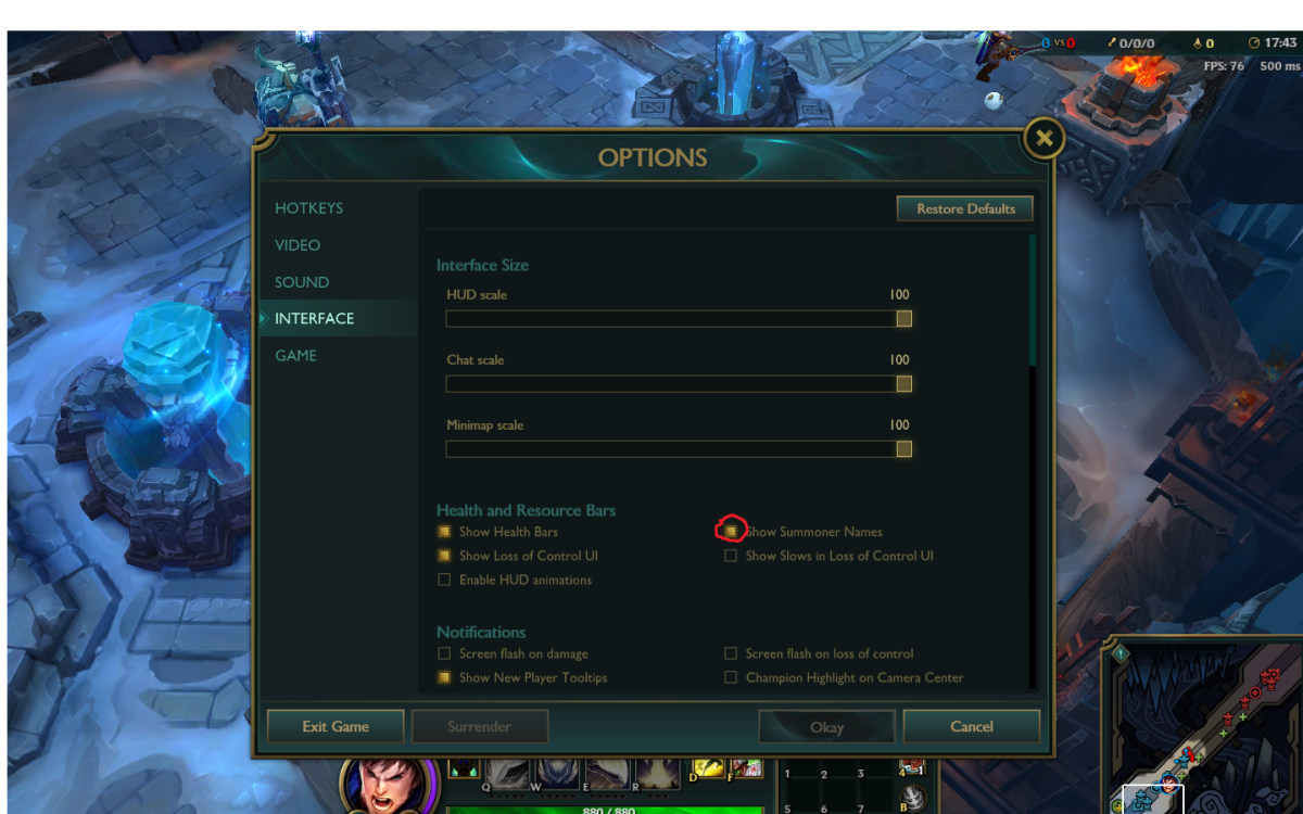 Para tal é importante que a opção “Show Summoner Names” se encontre selecionada.